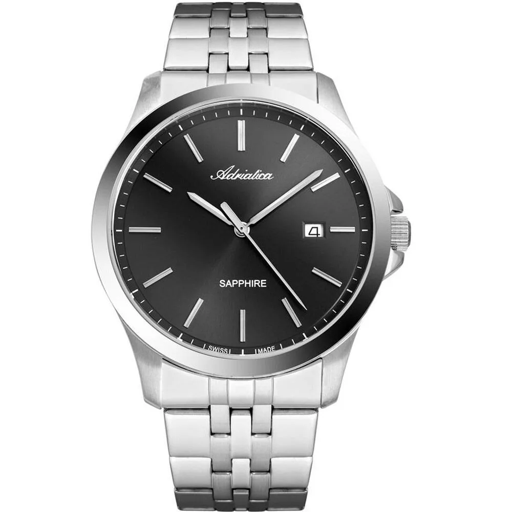 Az Adriatica Premiere férfi karóra A8303.5114Q karóra házának anyaga Nemesacél, színe Ezüst, a szíjának anyaga Nemesacél és a színe Ezüst. Az óratok átmérője 42 mm, alakja Kerek. A karóra üvege Zafír (karcolásmentes), szerkezete Kvarc és vízállósága 5 atm (50m) (erősen cseppálló).