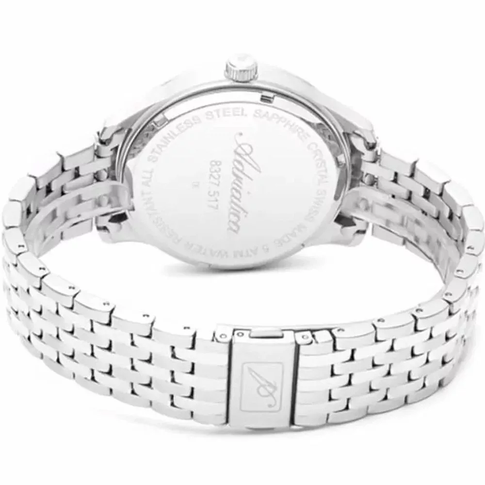 Az Adriatica Premiere férfi karóra A8327.5115Q karóra házának anyaga Nemesacél, színe Ezüst, a szíjának anyaga Nemesacél és a színe Ezüst. Az óratok átmérője 40 mm, alakja Kerek. A karóra üvege Zafír (karcolásmentes), szerkezete Kvarc és vízállósága 5 atm (50m) (erősen cseppálló).