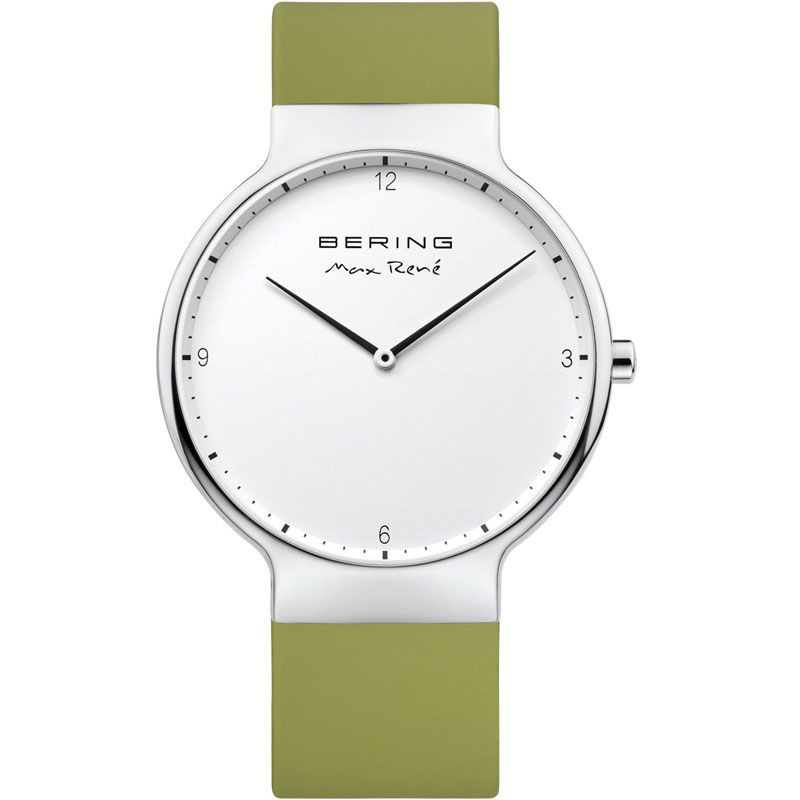 A Bering Max Rene férfi karóra 15540-800 karóra házának anyaga Nemesacél, színe Ezüst, a szíjának anyaga Szilikon és a színe Zöld. Az óratok átmérője 40 mm, alakja Kerek. A karóra üvege Zafír (karcolásmentes), szerkezete Kvarc és vízállósága 5 atm (50m) (erősen cseppálló).