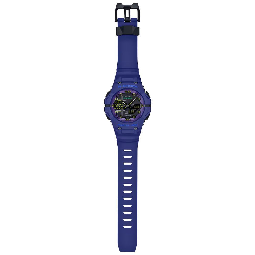 A Casio G-Shock férfi karóra GA-B001CBR-2AER karóra házának anyaga Műanyag, színe Kék, a szíjának anyaga Műanyag és a színe Kék. Az óratok átmérője 43 mm, alakja Kerek. A karóra üvege Kristály (nehezen karcolható), szerkezete Kvarc és vízállósága 20 atm (200m) (búvárkodásra is alkalmas).