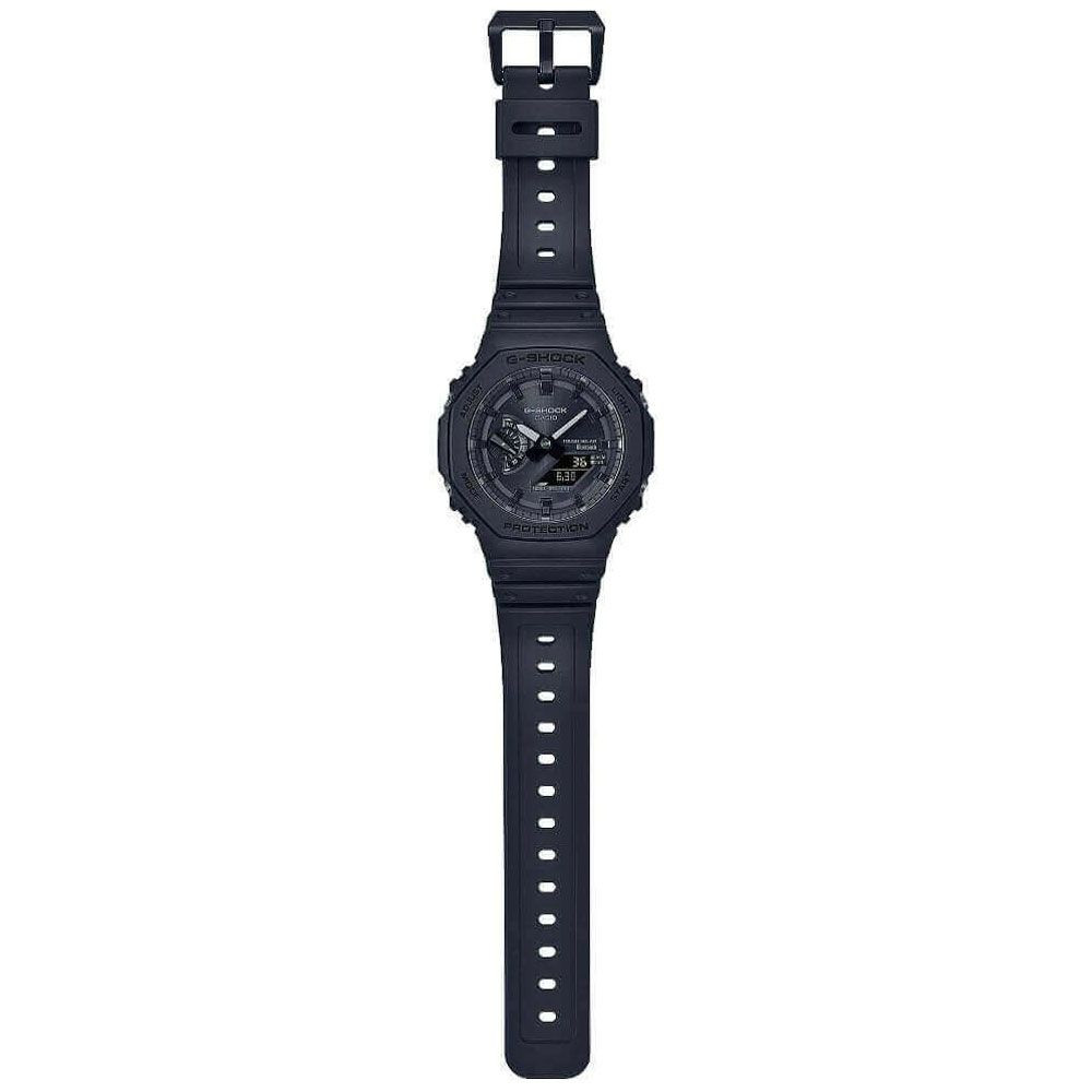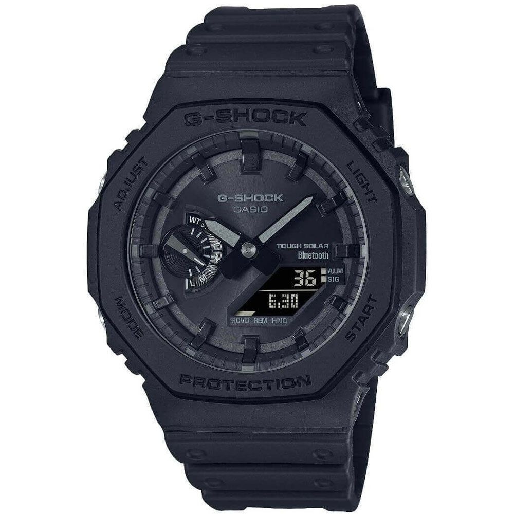 A Casio G-Shock férfi karóra GA-B2100-1A1ER karóra házának anyaga Műanyag, színe Fekete, a szíjának anyaga Műanyag és a színe Fekete. Az óratok átmérője 45 mm, alakja Kerek. A karóra üvege Kristály (nehezen karcolható), szerkezete Solar és vízállósága 20 atm (200m) (búvárkodásra is alkalmas).