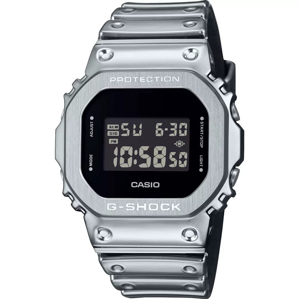 A Casio G-Shock férfi karóra GM-5600YM-8ER karóra házának anyaga nemesacél, színe ezüst, a szíjának anyaga szilikon és a színe ezüst. Az óratok átmérője 43 mm, alakja négyszögű. A karóra üvege kristály (nehezen karcolható), szerkezete kvarc és vízállósága 20 atm (200m) (búvárkodásra is alkalmas).