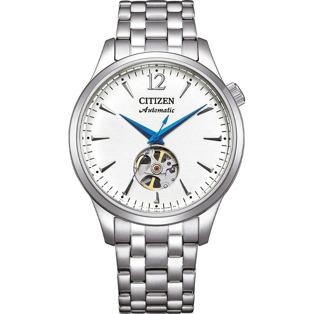A Citizen Automatic férfi karóra NH9131-73A karóra házának anyaga Nemesacél, színe Ezüst, a szíjának anyaga Nemesacél és a színe Ezüst. Az óratok átmérője 40 mm, alakja Kerek. A karóra üvege Kristály (nehezen karcolható), szerkezete Automata és vízállósága 5 atm (50m) (erősen cseppálló).