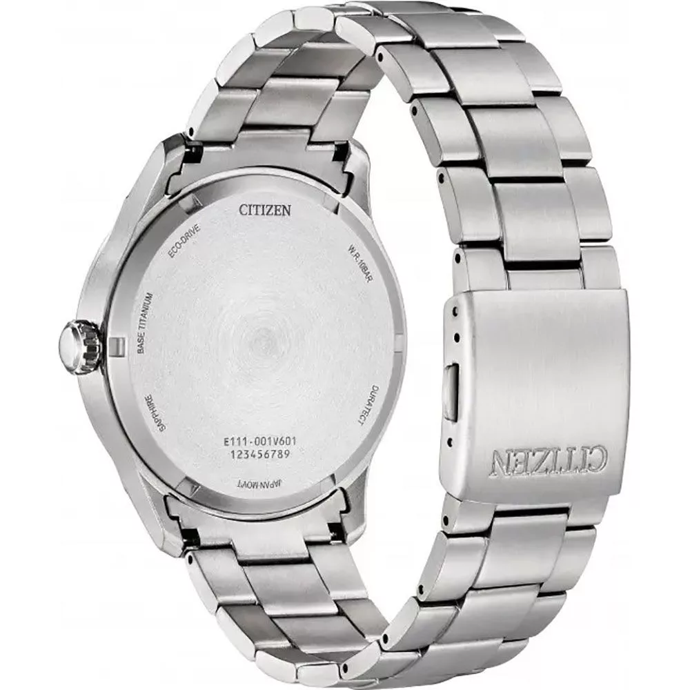 A Citizen Titanium férfi karóra BM7570-80L karóra házának anyaga Titánium, színe Ezüst, a szíjának anyaga Titánium és a színe Ezüst. Az óratok átmérője 42 mm, alakja Kerek. A karóra üvege Zafír (karcolásmentes), szerkezete Solar és vízállósága 10 atm (100m) (úszásra is alkalmas).