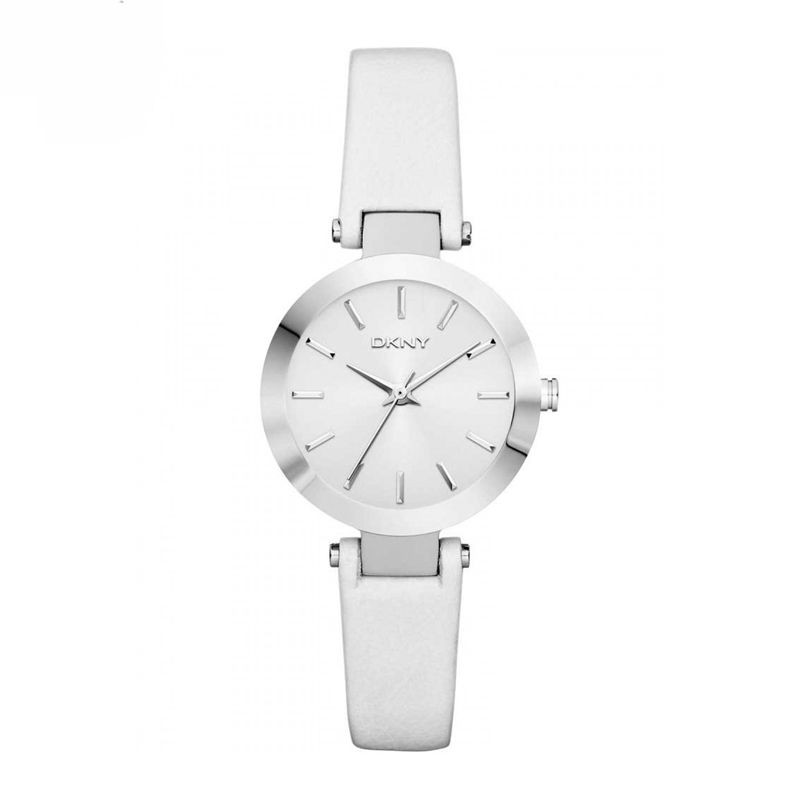 A Dkny női karóra NY2403 karóra házának anyaga Nemesacél, színe Ezüst, a szíjának anyaga Bőr és a színe Fehér. Az óratok átmérője 28 mm, alakja Kerek. A karóra üvege Kristály (nehezen karcolható), szerkezete Kvarc és vízállósága 5 atm (50m) (erősen cseppálló).