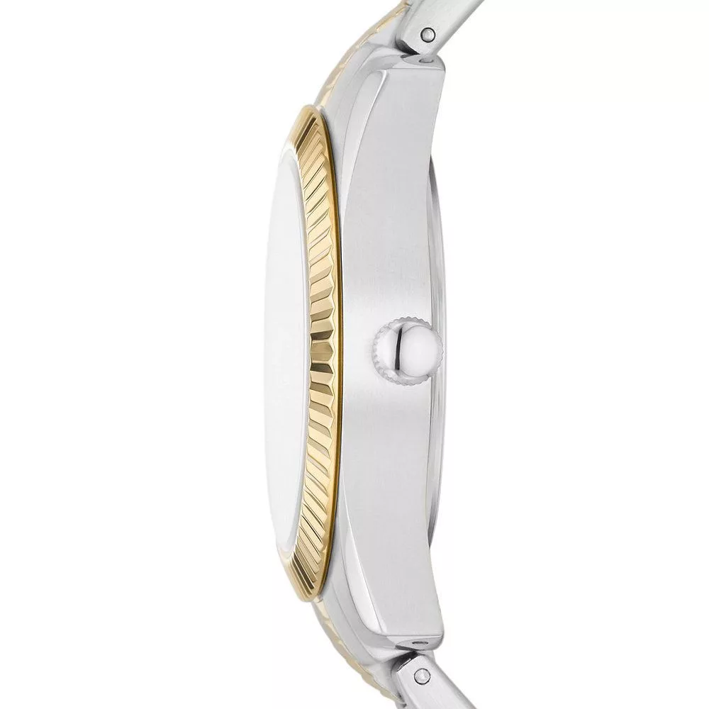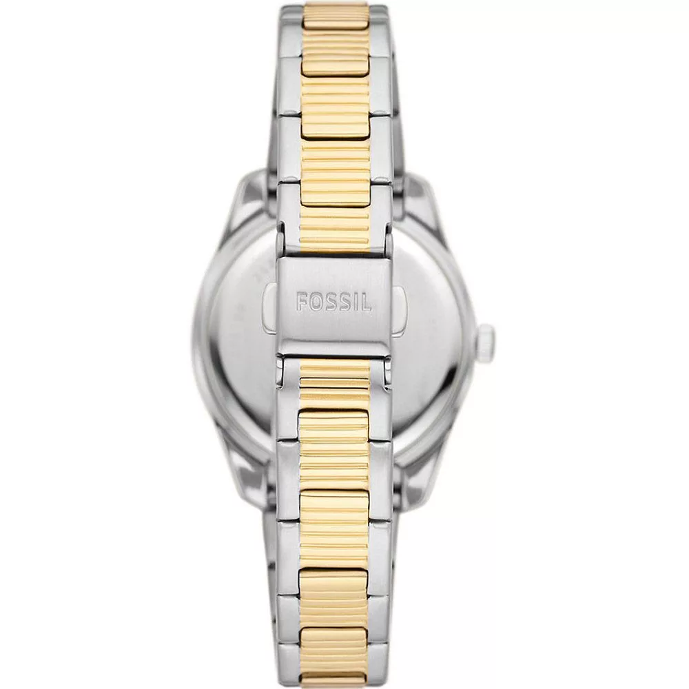 A Fossil Scarlette női karóra ES5240 karóra házának anyaga Nemesacél, színe Arany,Ezüst, a szíjának anyaga Nemesacél és a színe Arany,Ezüst. Az óratok átmérője 32 mm, alakja Kerek. A karóra üvege Kristály (nehezen karcolható), szerkezete Kvarc és vízállósága 5 atm (50m) (erősen cseppálló).