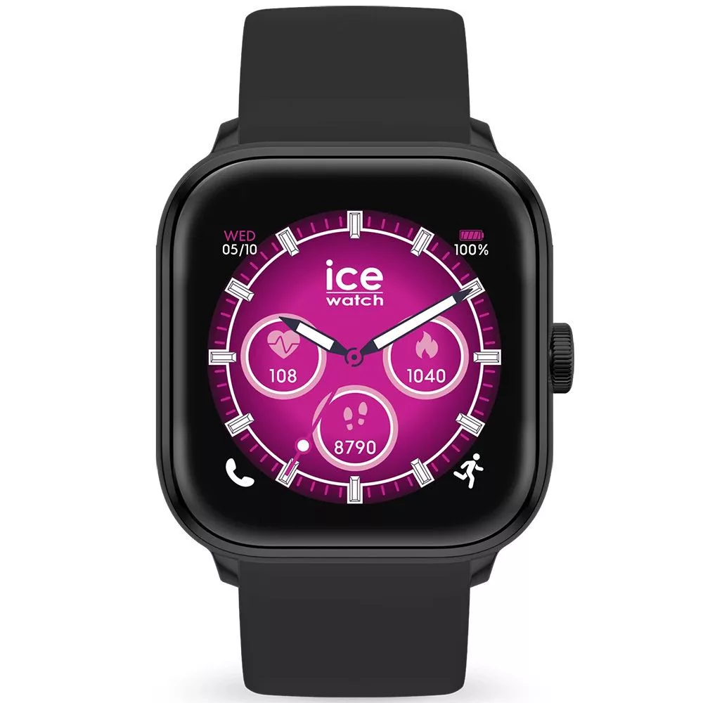 Az Ice Watch Ice Smart 2.0 unisex okosóra 38mm 023066 karóra házának anyaga Fémötvözet,Műanyag, színe Fekete, a szíjának anyaga Szilikon és a színe Fekete. Az óratok átmérője 38 mm, alakja Négyszögű. A karóra üvege Kristály (nehezen karcolható), szerkezete Kvarc és vízállósága 3 atm (30m) (cseppmentes).