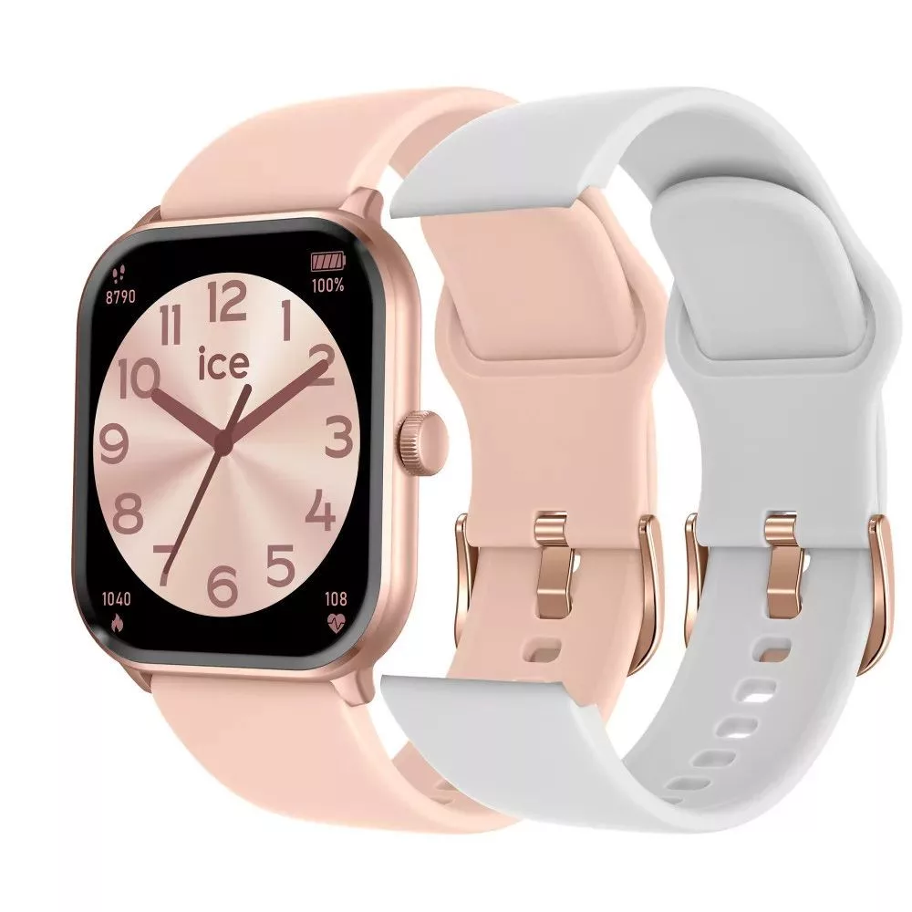 Az Ice Watch Ice Smart One unisex okosóra szett 022251 karóra házának anyaga Fémötvözet,Műanyag, színe Rose gold, a szíjának anyaga Szilikon és a színe Fehér,Púder. Az óratok átmérője 38 mm, alakja Négyszögű. A karóra üvege Kristály (nehezen karcolható), szerkezete Kvarc és vízállósága 3 atm (30m) (cseppmentes).