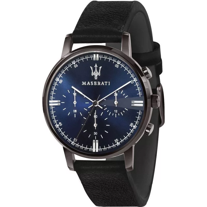 A Maserati Eleganza férfi karóra R8871630002 karóra házának anyaga Nemesacél, színe Fekete, a szíjának anyaga Bőr és a színe Fekete. Az óratok átmérője 42 mm, alakja Kerek. A karóra üvege Kristály (nehezen karcolható), szerkezete Kvarc és vízállósága 10 atm (100m) (úszásra is alkalmas).