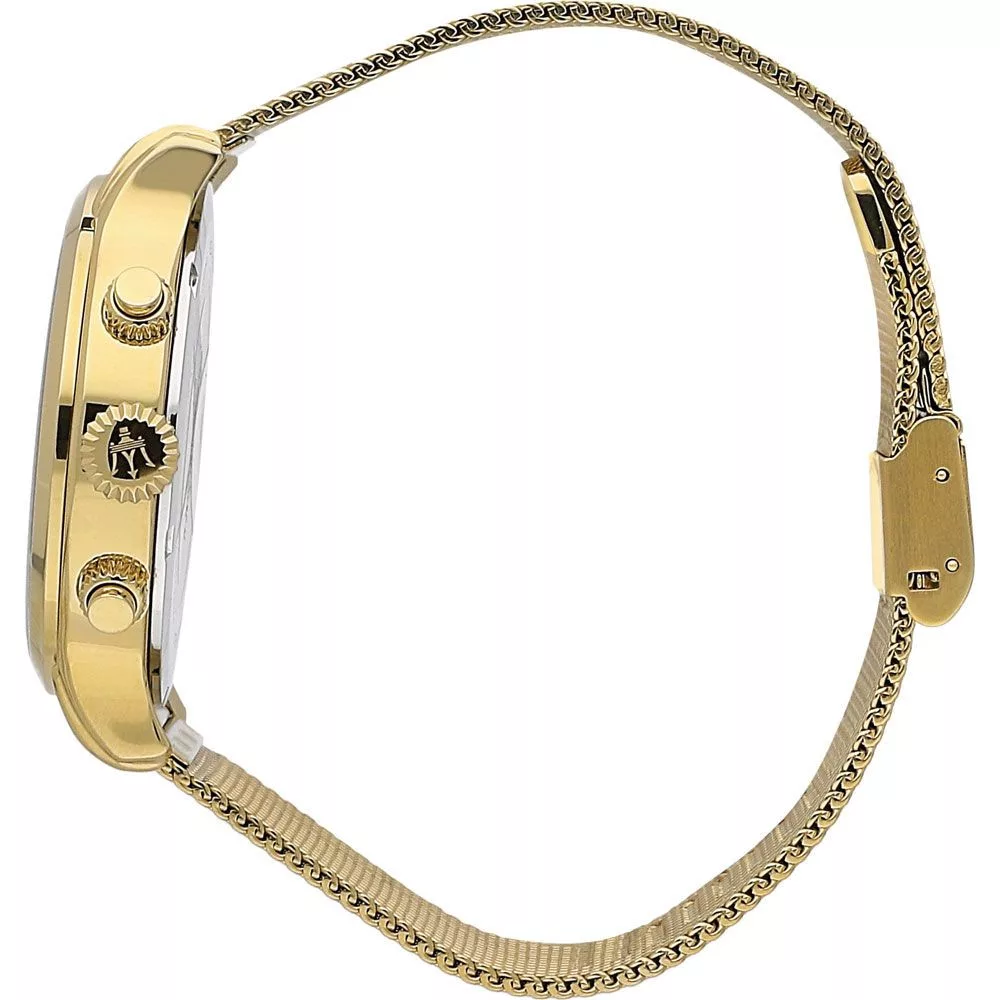 A Maserati Epoca férfi karóra R8873618007 karóra házának anyaga Nemesacél, színe Arany, a szíjának anyaga Nemesacél és a színe Arany. Az óratok átmérője 42 mm, alakja Kerek. A karóra üvege Zafír (karcolásmentes), szerkezete Kvarc és vízállósága 10 atm (100m) (úszásra is alkalmas).