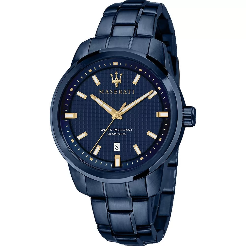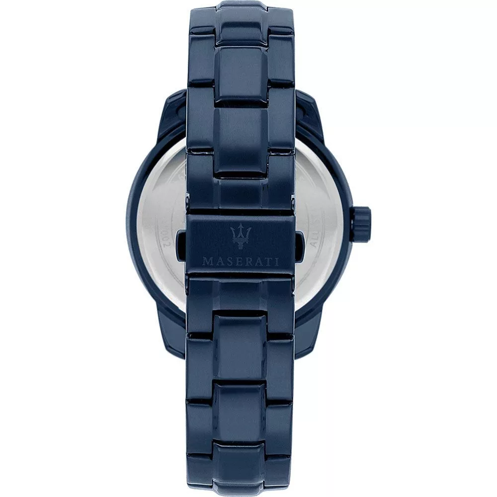 A Maserati Successo férfi karóra R8853141002 karóra házának anyaga Nemesacél, színe Kék, a szíjának anyaga Nemesacél és a színe Kék. Az óratok átmérője 42 mm, alakja Kerek. A karóra üvege Kristály (nehezen karcolható), szerkezete Kvarc és vízállósága 5 atm (50m) (erősen cseppálló).