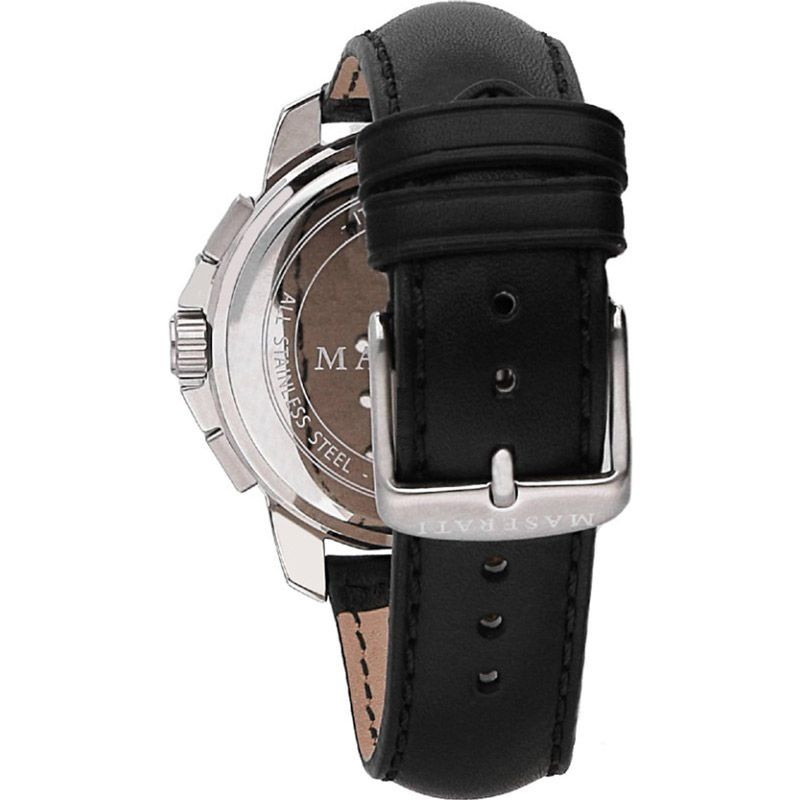 A Maserati Successo férfi karóra R8871621006 karóra házának anyaga Nemesacél, színe Ezüst, a szíjának anyaga Bőr és a színe Fekete. Az óratok átmérője 44 mm, alakja Kerek. A karóra üvege Kristály (nehezen karcolható), szerkezete Kvarc és vízállósága 5 atm (50m) (erősen cseppálló).