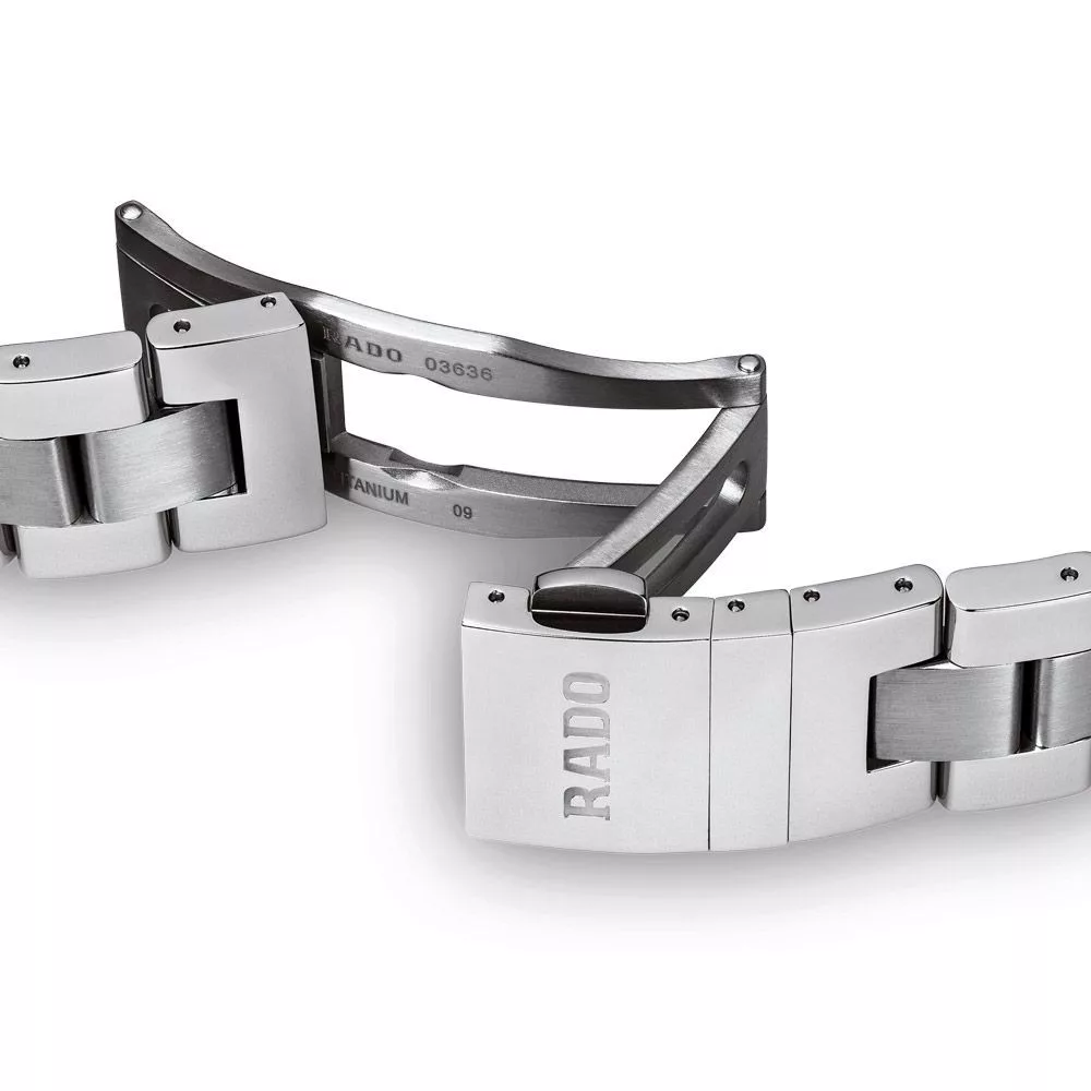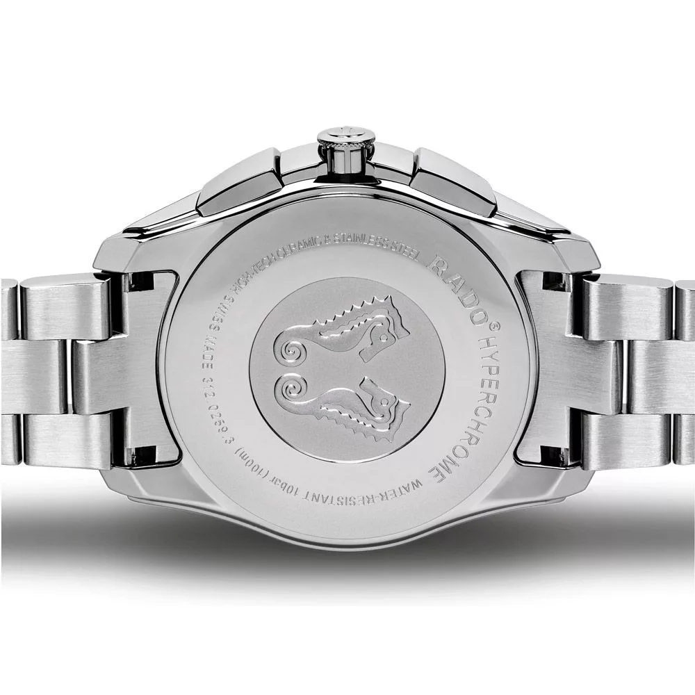 A Rado HyperChrome Chronograph férfi karóra R32259203 karóra házának anyaga Nemesacél, színe Ezüst, a szíjának anyaga Titánium,Nemesacél és a színe Ezüst. Az óratok átmérője 45 mm, alakja Kerek. A karóra üvege Zafír (karcolásmentes), szerkezete Kvarc és vízállósága 10 atm (100m) (úszásra is alkalmas).