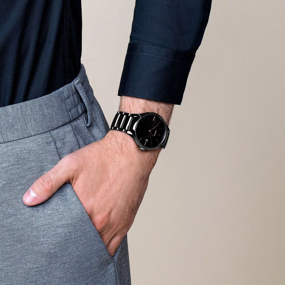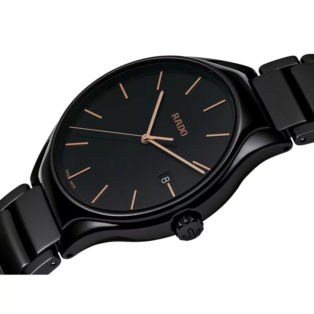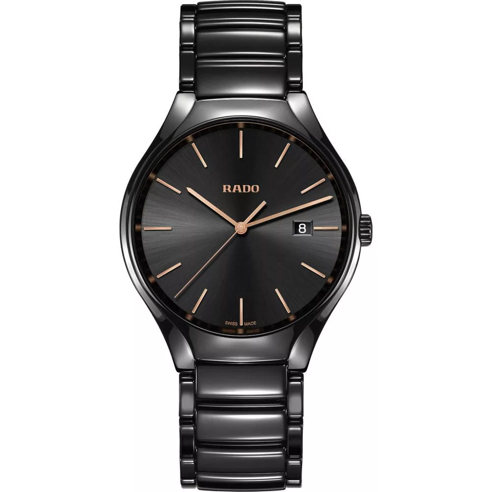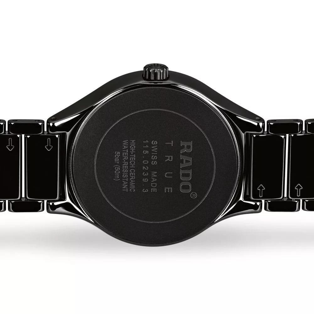 A Rado True unisex karóra R27238162 karóra házának anyaga Kerámia, színe Fekete, a szíjának anyaga Titánium,Kerámia és a színe Fekete. Az óratok átmérője 40 mm, alakja Kerek. A karóra üvege Zafír (karcolásmentes), szerkezete Kvarc és vízállósága 5 atm (50m) (erősen cseppálló).