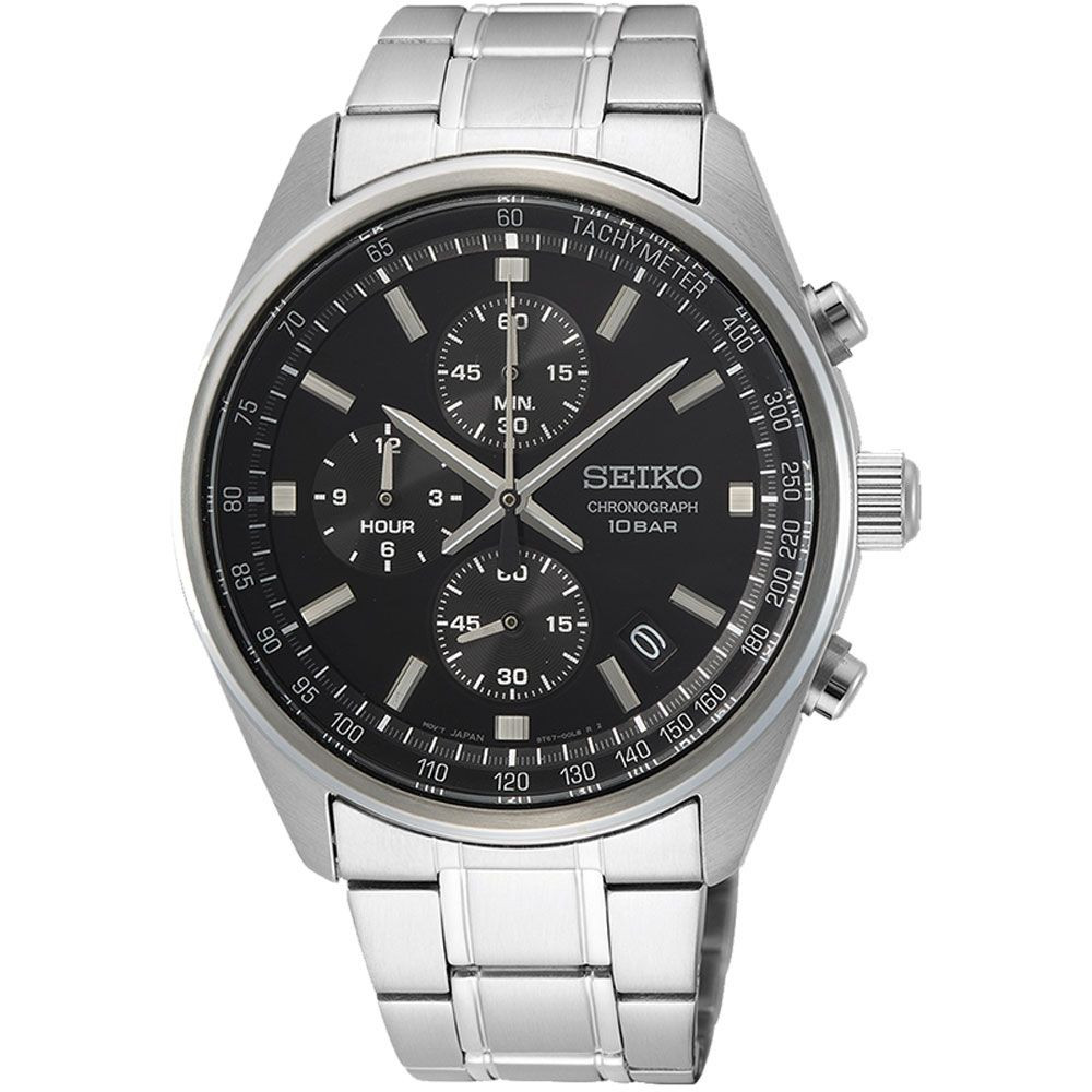 A Seiko Chronograph férfi karóra SSB379P1 karóra házának anyaga Nemesacél, színe Ezüst, a szíjának anyaga Nemesacél és a színe Ezüst. Az óratok átmérője 41 mm, alakja Kerek. A karóra üvege Kristály (nehezen karcolható), szerkezete Kvarc és vízállósága 10 atm (100m) (úszásra is alkalmas).