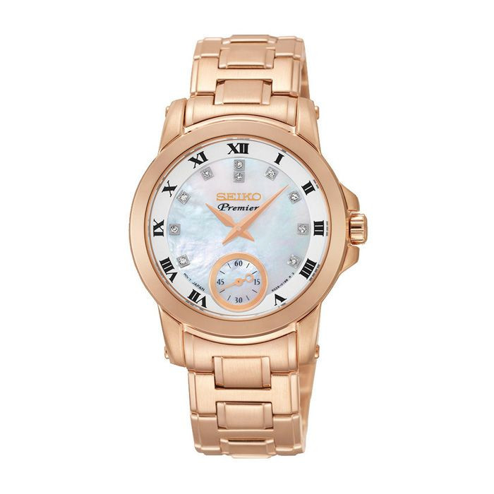 A Seiko női karóra SRZK58P1 karóra házának anyaga Nemesacél, színe Rose gold, a szíjának anyaga Nemesacél és a színe Rose gold. Az óratok átmérője 31 mm, alakja Kerek. A karóra üvege Kristály (nehezen karcolható), szerkezete Kvarc és vízállósága 10 atm (100m) (úszásra is alkalmas).