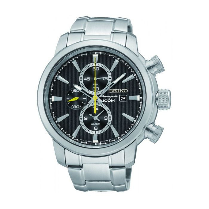 A SEIKO óra SNAF45P1 karóra házának anyaga Nemesacél, színe Ezüst, a szíjának anyaga Nemesacél és a színe Ezüst. Az óratok átmérője 44 mm, alakja Kerek. A karóra üvege Zafír (karcolásmentes), szerkezete Kvarc és vízállósága 10 atm (100m) (úszásra is alkalmas).