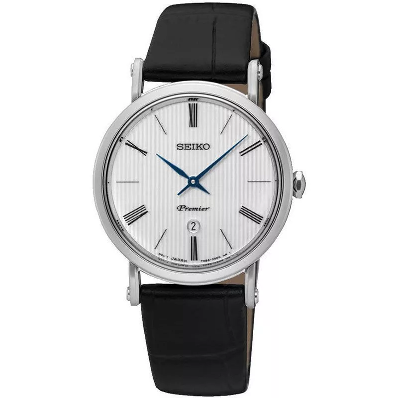 A Seiko Premier női karóra SXB431P1 karóra házának anyaga Nemesacél, színe Ezüst, a szíjának anyaga Bőr és a színe Fekete. Az óratok átmérője 30 mm, alakja Kerek. A karóra üvege Zafír (karcolásmentes), szerkezete Kvarc és vízállósága 3 atm (30m) (cseppmentes).