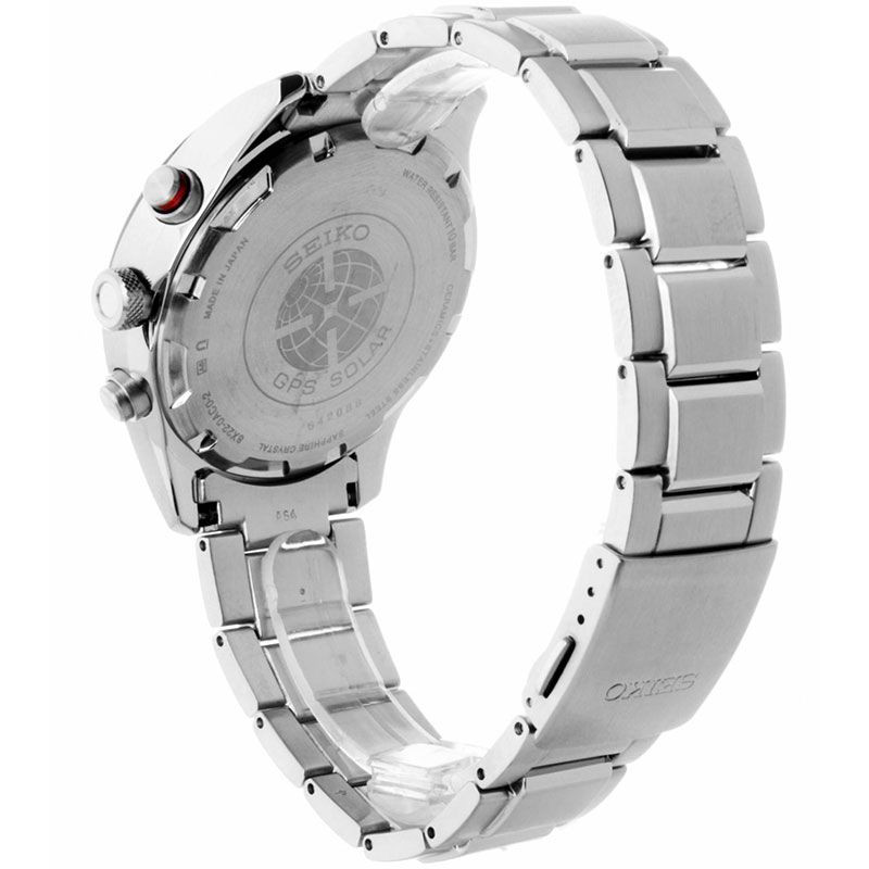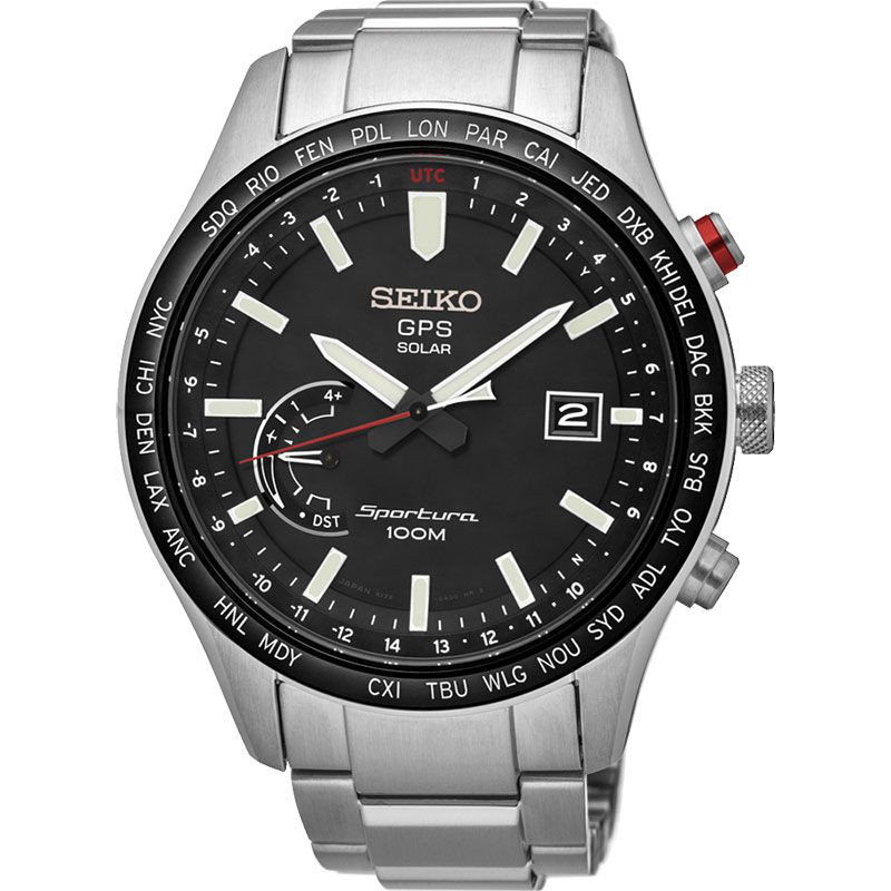 A Seiko Sportura férfi karóra SSF003J1 karóra házának anyaga Nemesacél, színe Ezüst, a szíjának anyaga Nemesacél és a színe Ezüst. Az óratok átmérője 45 mm, alakja Kerek. A karóra üvege Zafír (karcolásmentes), szerkezete Solar és vízállósága 10 atm (100m) (úszásra is alkalmas).