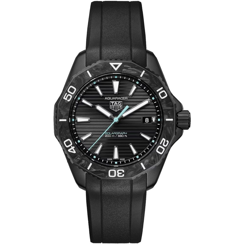 A Tag Heuer Aquaracer Professional 200 Solargraph férfi karóra WBP1112.FT6199 karóra házának anyaga Nemesacél, színe Fekete, a szíjának anyaga Szilikon és a színe Fekete. Az óratok átmérője 40 mm, alakja Kerek. A karóra üvege Zafír (karcolásmentes), szerkezete Solar és vízállósága 20 atm (200m) (búvárkodásra is alkalmas).