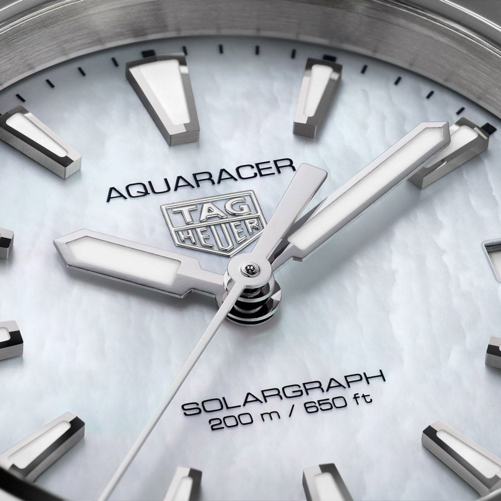 A Tag Heuer Aquaracer Professional Solargraph női karóra WBP1312.BA0005 karóra házának anyaga Nemesacél, színe Ezüst, a szíjának anyaga Nemesacél és a színe Ezüst. Az óratok átmérője 34 mm, alakja Kerek. A karóra üvege Zafír (karcolásmentes), szerkezete Solar és vízállósága 20 atm (200m) (búvárkodásra is alkalmas).