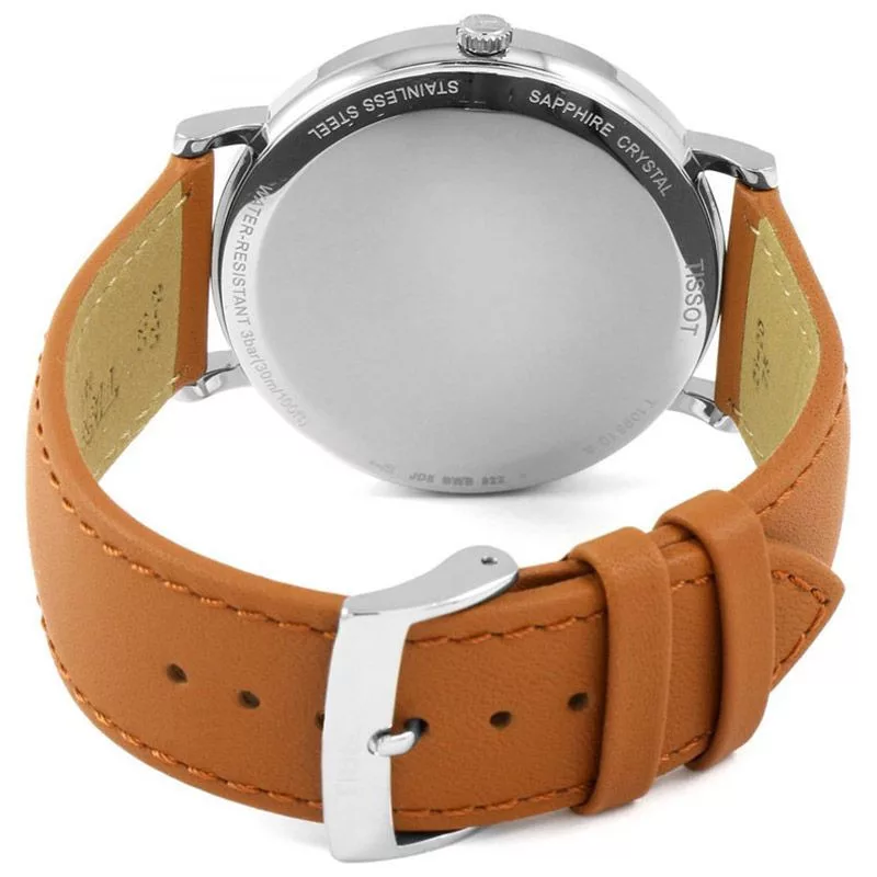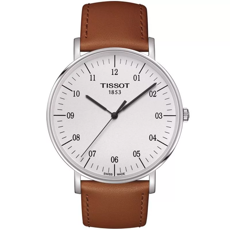 A Tissot T-Classic Everytime Big férfi karóra T109.610.16.037.00 karóra házának anyaga Nemesacél, színe Ezüst, a szíjának anyaga Bőr és a színe Barna. Az óratok átmérője 42 mm, alakja Kerek. A karóra üvege Zafír (karcolásmentes), szerkezete Kvarc és vízállósága 3 atm (30m) (cseppmentes).