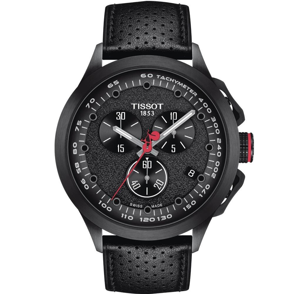 A Tissot T-Race Cycling Giro d'Italia 2022 Special Edition férfi karóra T135.417.37.051.01 karóra házának anyaga Nemesacél, színe Fekete, a szíjának anyaga Szilikon,Bőr és a színe Fekete. Az óratok átmérője 45 mm, alakja Kerek. A karóra üvege Zafír (karcolásmentes), szerkezete Kvarc és vízállósága 10 atm (100m) (úszásra is alkalmas).