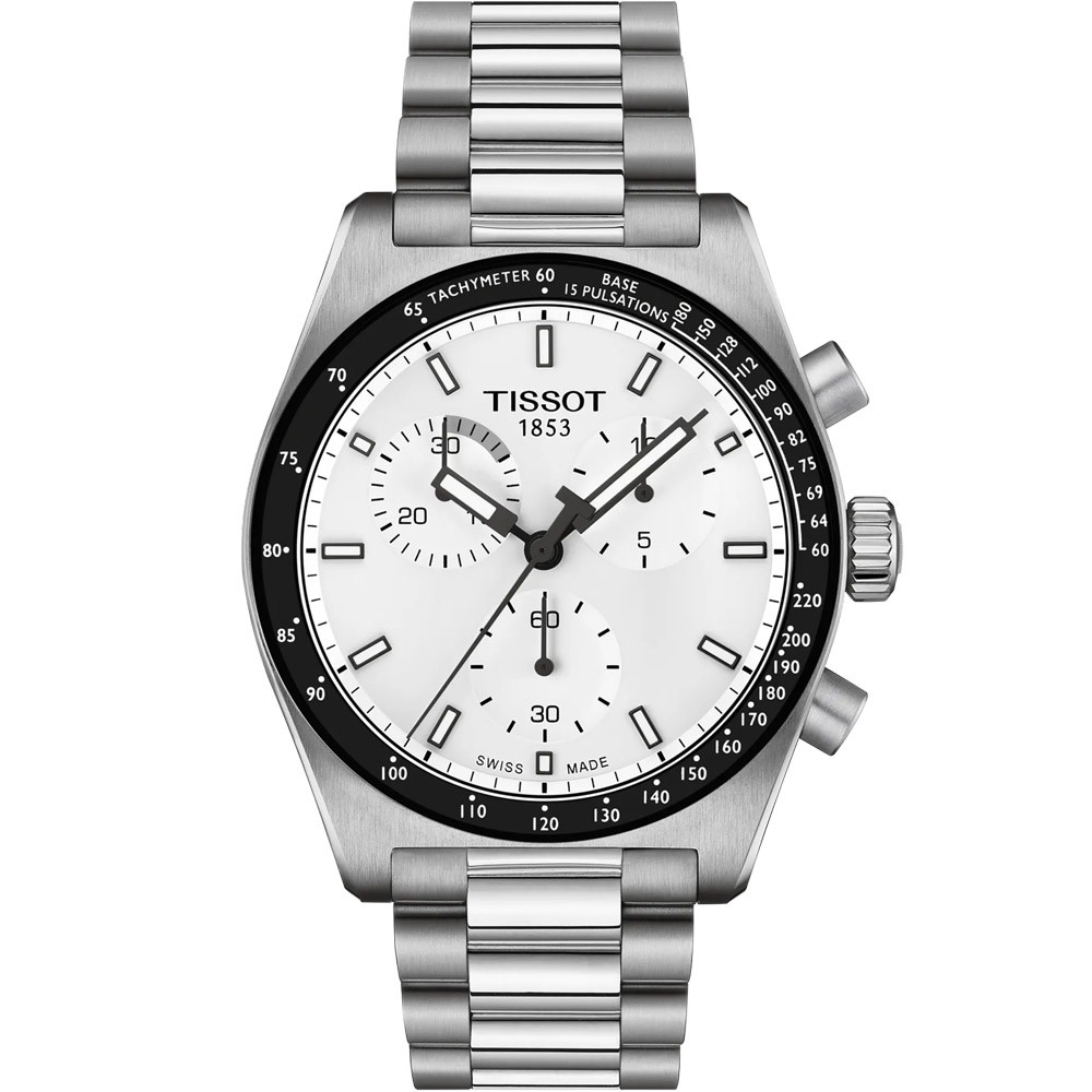 A Tissot T-Sport PR516 Chronograph férfi karóra T149.417.11.011.00 karóra házának anyaga nemesacél, színe ezüst, a szíjának anyaga nemesacél és a színe ezüst. Az óratok átmérője 40 mm, alakja kerek. A karóra üvege zafír (karcolásmentes), szerkezete kvarc és vízállósága 10 atm (100m) (úszásra is alkalmas).