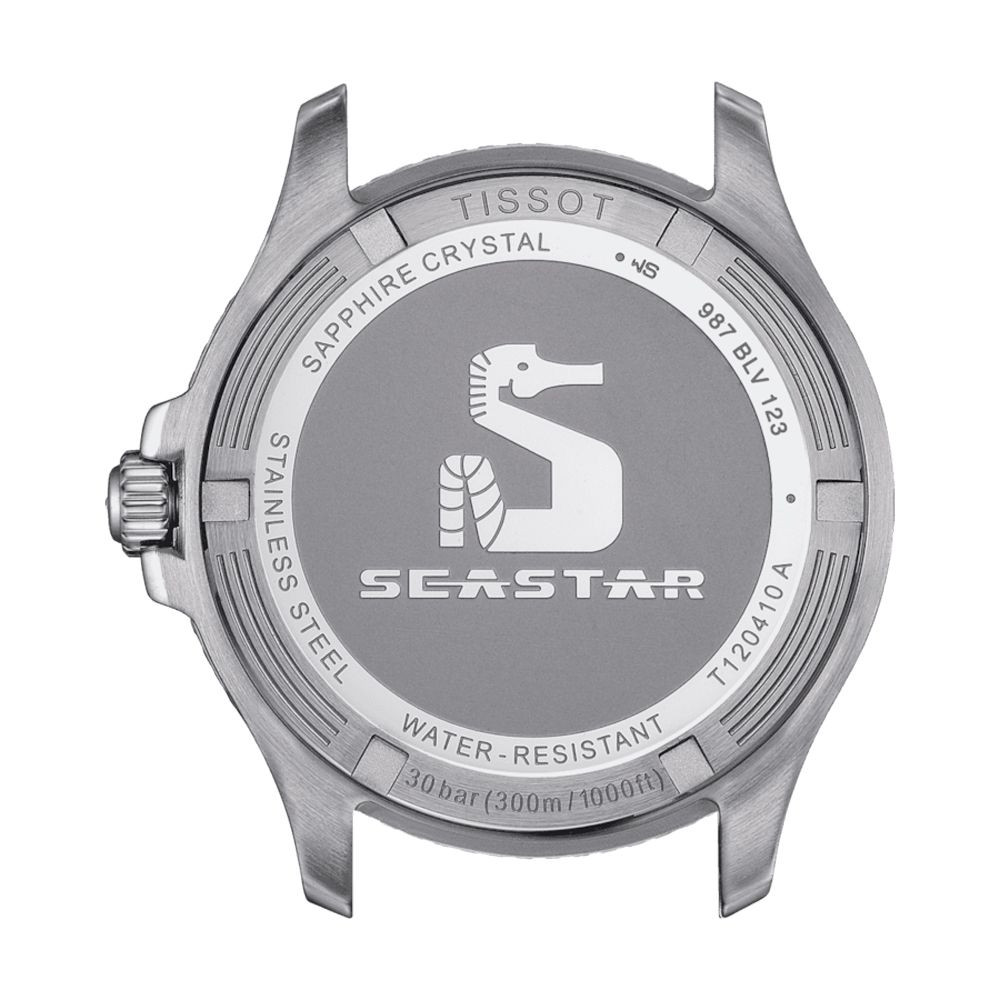 A Tissot T-Sport Seastar 1000 férfi karóra T120.410.27.051.00 karóra házának anyaga Nemesacél, színe Ezüst, a szíjának anyaga Szilikon és a színe Fekete. Az óratok átmérője 40 mm, alakja Kerek. A karóra üvege Zafír (karcolásmentes), szerkezete Kvarc és vízállósága 30 atm (300m) (búvárkodásra is alkalmas).