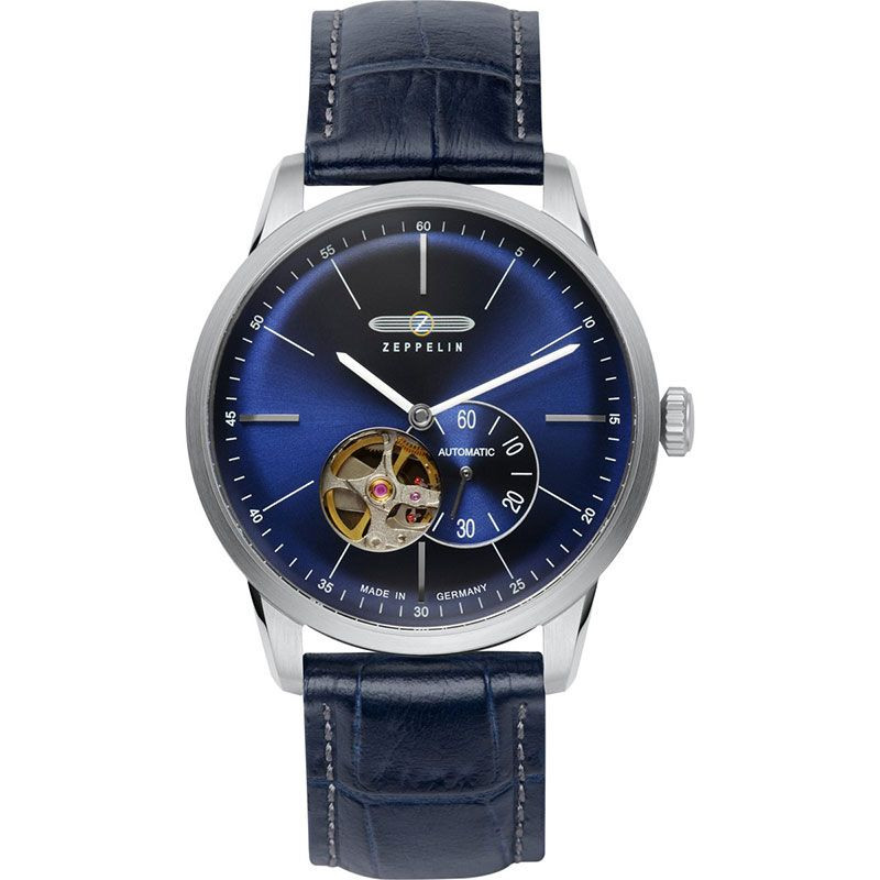 A Zeppelin Flatline férfi karóra 7364-3 karóra házának anyaga Nemesacél, színe Ezüst, a szíjának anyaga Bőr és a színe Kék. Az óratok átmérője 40 mm, alakja Kerek. A karóra üvege Kristály (nehezen karcolható), szerkezete Automata és vízállósága 3 atm (30m) (cseppmentes).