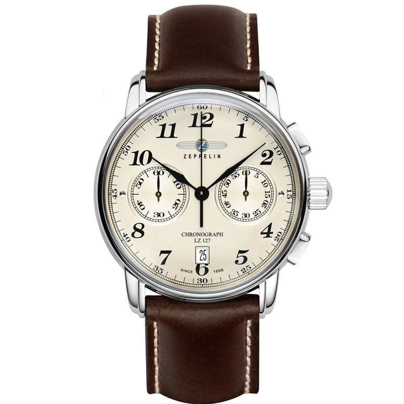 A Zeppelin LZ127 férfi karóra 7678-5 karóra házának anyaga Nemesacél, színe Ezüst, a szíjának anyaga Bőr és a színe Barna. Az óratok átmérője 42 mm, alakja Kerek. A karóra üvege Kristály (nehezen karcolható), szerkezete Kvarc és vízállósága 5 atm (50m) (erősen cseppálló).